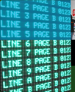 | - | 30mm (1.2"), 51mm (2"), 76mm (3"), 102mm (4") character height | | - | Single or 16 colors | | - | Normal bright or superbright models | | - | Auto programming and 26 eye catching display features | | - | Real time clock | | - | Instant page | | - | 10 Timers for replay | | - | Attractive graphics and animations | | - | Infrared remote keyboard | | - | RS232 standard, RS422/485 serial interface or LAN interface option | | - | Networking capability | | - | 110VAC, 220~240VAC or 12VDC operated | | - | User friendly Editor Program on Windows platform