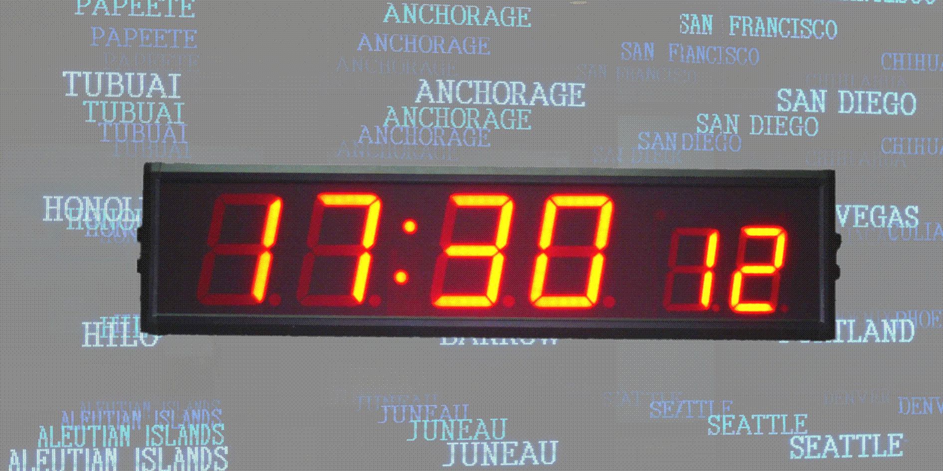 We have developed a complete series of 7 segment and dot matrix display for 4 digits high precision clock in meeting increasing market demand. Different digit heights ranging from 50mm to 450mm are available for your selection. Custom size clocks or digital displays are available on request. The eye catching digital display can be implemented as Event Count Down, Temperature Display and Price Indicator. for indoor or outdoor application. The Digital Circle Line Clock has been designed for Commercial and Industrial timing applications. The clocks can be configured in standalone or Master/Slave networking operating mode. There is GPS port or LAN port equipped in the Master Clock unit for synchronizing to external GPS receiver or remote NTP/SNTP Time Servers. Application:-Indoor or outdoor Wall Clock, Event Count Down Display, Temperature display, Timers, Price Indicator for Gas station and Time Wall. Models: CLK-50, CLK-76, CLK-100, CLK-150, CLK-200, CLK-250, CLK-330, CLK-450 series Indoor or Outdoor General Specification: - 50mm, 76mm, 100mm, 150mm, 200mm, 250mm, 330mm and 450mm digit height - Red, Green, Yellow, Blue and white color - Normal bright and ultra bright; clear under sun - High precision clock with Temp compensation - High accuracy NTP server or GPS solution option - Optional Temperature Display in deg C or F - RS232 or RS485 serial interface - Networking capability - Auto or manual brightness control - 110 or 220~240 VAC operated